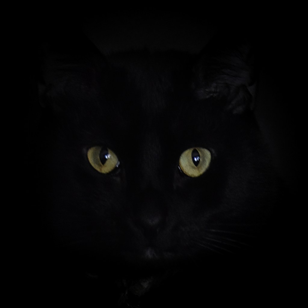 A square crop can be a useful tool to bring emphasis to your subject, as in this image of a black cat in a dark room. (His pupils are centered vertically along the vertical lines of a rule-of-thirds placement, by the way.)
