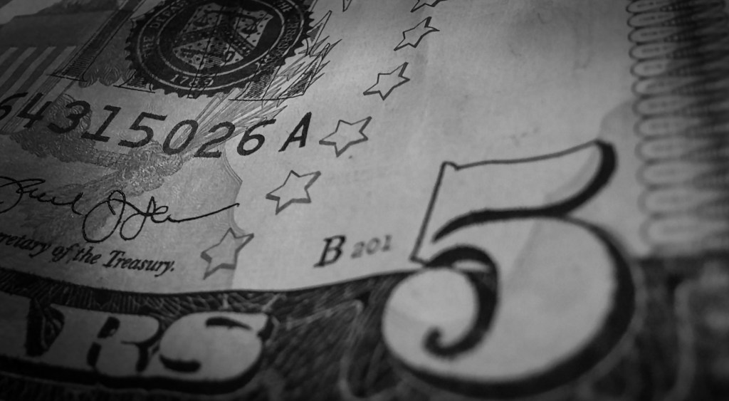 Money is another common object, something you have the potential to see every day. It’s so common that it is easy to take it for granted, not to see the details, shapes, and colors involved. But if you look closely, and really try to see the money around you with a photographer’s eye, there are creative image possibilities galore.
